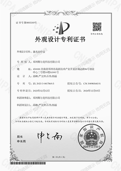32孔激光治疗仪外观专利证书